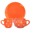 Reggeliző szett 3 részes Bevonat: Károsanyag mentes,fényes máz. Készült: Égetéssel 1030 C-on Űrméret: 4dl, 2dl, Tányér átmérő: 19,5 cm Mosogatógépben és mikróban is használható. Termék adatai Anyaga: kerámia Szín: narancs Bevonat: Károsanyag mentes,fén