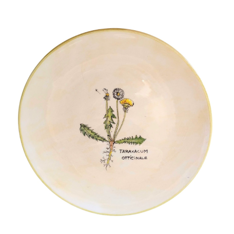 Reggeliző Tányér Gyermekláncfű Anyaga: kerámia Szín:Máz alatti festék, 1030C-on égetett mázzal bevonva. Átmérője:19,5cm Bevonat: Károsanyag mentes,fényes máz. Készült: Égetéssel 1030 C-on Anyaga: kerámia Szín:Máz alatti festék, 1030C-on égetett mázzal