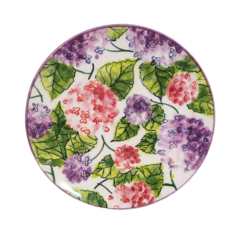 Termék adatai Reggelizős festett tányér Hortenzia Anyaga: kerámia Szín:Máz alatti festék, 1030C-on égetett mázzal bevonva. Átmérő:19,5 cm Bevonat: Károsanyag mentes,fényes máz. Készült: Égetéssel 1030 C-on Minden egyes darab egyedileg,kézzel készült