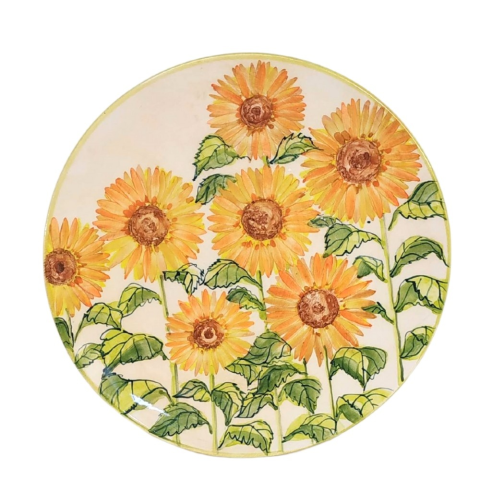 Termék adatai Reggelizős festett tányér Napraforgó Anyaga: kerámia Szín:Máz alatti festék, 1030C-on égetett mázzal bevonva. Átmérő:19,5 cm Bevonat: Károsanyag mentes,fényes máz. Készült: Égetéssel 1030 C-on Minden egyes darab egyedileg,kézzel készült