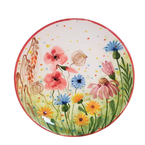 Termék adatai Reggelizős festett tányér Pipacsmező Anyaga: kerámia Szín:Máz alatti festék, 1030C-on égetett mázzal bevonva. Átmérő:19,5 cm Bevonat: Károsanyag mentes,fényes máz. Készült: Égetéssel 1030 C-on Minden egyes darab egyedileg,kézzel készült