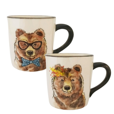 Valentin napi medve páros bögrék 2db 1db medvefiú 1db medvelány 2*4 dl Termék adatai Anyaga: kerámia Szín:Máz alatti festés 4 dl Bevonat: Károsanyag mentes,fényes máz. Készült: Égetéssel 1030 C-on Minden egyes darab egyedileg,kézzel készült és kézzel f