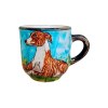 Termék adatai: Anyaga: KerámiaSzín: Színes mázalatti festékBevonat: Károsanyag mentes,fényes máz.Készült: Égetéssel 1030 C-onŰrméret: 2 dl Minden egyes darab egyedileg,kézzel készült és kézzel festett, emiatt előfordulhatnak apróbb hibák,amelyek minden da