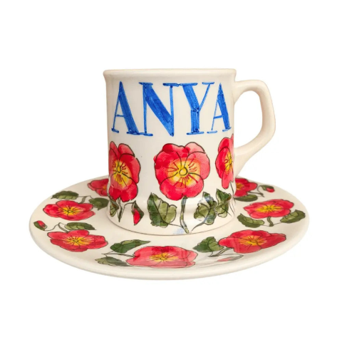 1 kép Bögre Manufaktúra Anya Piros Árvácska bögre és reggeliző tányér