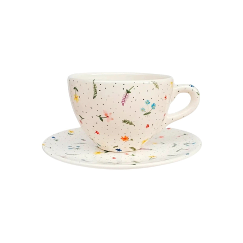 1 kép Bögre Manufaktúra Apró virágos kis jumbó bögre reggeliző tányérral