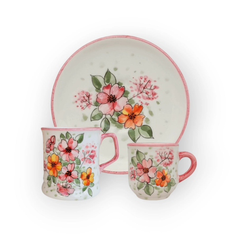 Az Csipkerózsa vadvirág reggeliző szett 1030 C-on készül, égetéses módszerrel. Minden egyes darab egyedileg, kézzel készült és kézzel festett, emiatt előfordulhatnak apróbb hibák, amelyek minden darabot még egyedibbé és különlegesebbé tesznek. A termék to