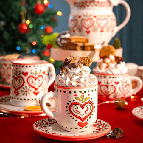1 kép Bögre Manufaktúra Karácsonyi Szívek Kávés Bögre Kistányérral