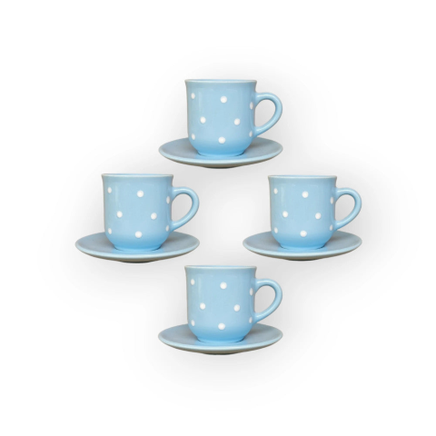 Bögre Manufaktúra Kévés bögre kistányérral négyes készlet pasztell kék bögrék, csészék termékleírás