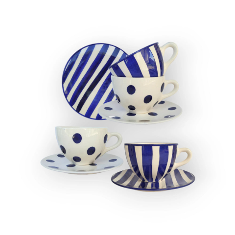 Bögre Manufaktúra Négyszemélyes kék reggeliző szett vegyes bögrék, csészék termékleírás