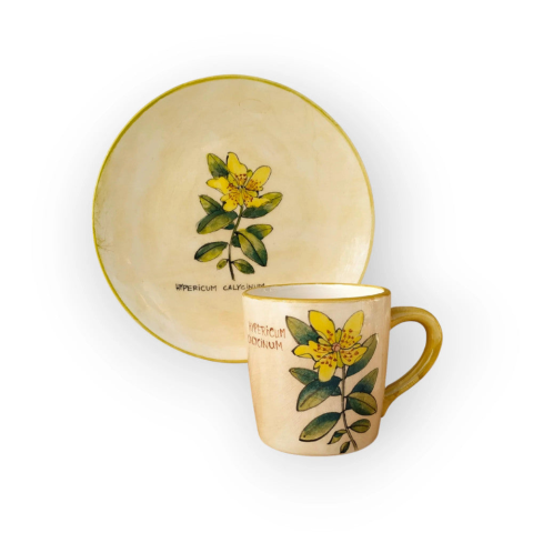 A Orbáncfű Reggeliző tányér és bögre 1030 C-on készül, égetéses módszerrel. Minden egyes darab egyedileg, kézzel készült és kézzel festett, emiatt előfordulhatnak apróbb hibák, amelyek minden darabot még egyedibbé és különlegesebbé tesznek. A termék továb