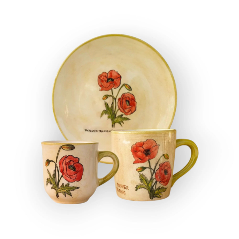 Az Pipacs Reggeliző szett 1030 C-on készül, égetéses módszerrel. Minden egyes darab egyedileg, kézzel készült és kézzel festett, emiatt előfordulhatnak apróbb hibák, amelyek minden darabot még egyedibbé és különlegesebbé tesznek. A termék további előnye,