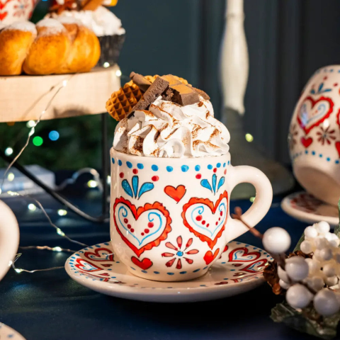 1 kép Bögre Manufaktúra Skandináv Szívek Kávés Bögre Kistányérral