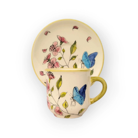 Teljes Bögre Manufaktúra Tavaszi pillangós kávés bögre és kistányér termékleírás