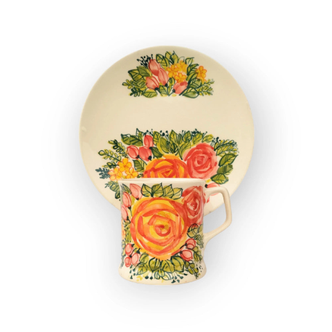1 kép Bögre Manufaktúra Virágos bögre és reggeliző tányér FL001 - rózsa minta