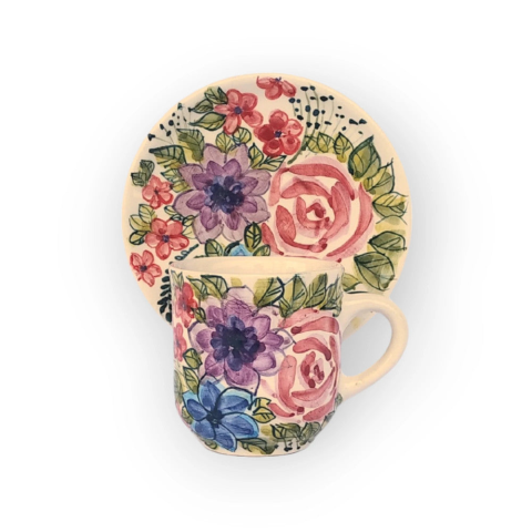 1 kép Bögre Manufaktúra Virágos kávés bögre és kistányér FL004 - árvácska