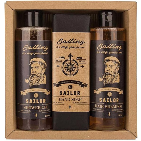 Kozmetikai ajándékcsomag - 250 ml tusfürdőt, 145 g szappant és 250 ml sampont tartalmaz A BOHEMIA GIFTS Sailor kozmetikai ajándékcsomag olajos tusfürdőt, krémes szappant és rumaromás sampont tartalmaz, amely teljes körű ápolást biztosít a férfiak teste és haja számára.A termékek kímélete