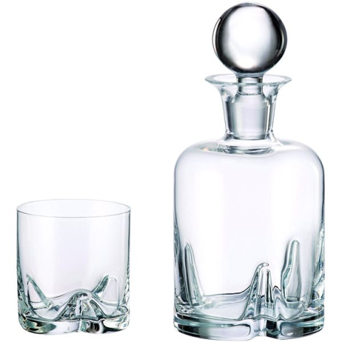 Whisky szett - a készletben 6 db whiskys pohár (410 ml) és egy whiskysüveg (1000 ml) található, ólommentes Cristallin üveg, a legjobb minőségű üveg alapanyagokból készült, a whiskysüveg hagyományos kézi fúvással készült, a megerősített fenék az ital hőmérsékletének állandóságát biztosítja, a nagymértékű átlátszóság garantálja a minőséget, kézi mosogatás javasolt, Csehországban készült. A Bohemia Royal Crystal TRIO whisky készlet a Bohemia Cry
