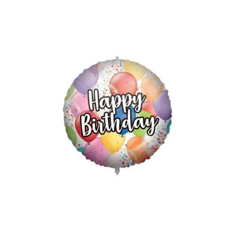 Happy Birthday Balloons Fólia lufi 46 cm Fólia léggömb, mely héliummal vagy levegővel tölthető. A lufi önzárószeleppel van ellátva, amely megakadályozza a gáz elszökését. Mérete: 46 cm Anyaga: fólia