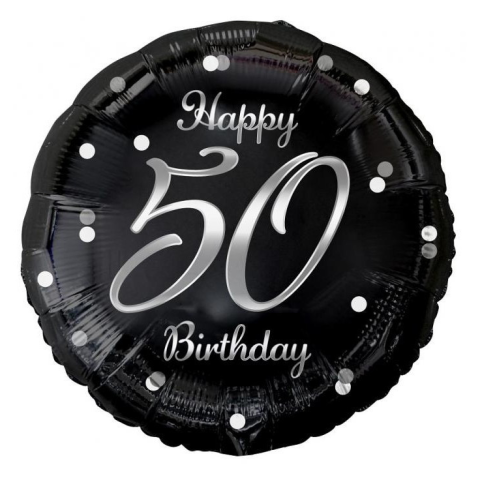 Boldog születésnapot Happy Birthday Black-Silver 50 fólia lufi 36 cm