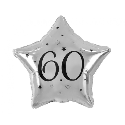 Boldog születésnapot Happy Birthday Silver, Ezüst csillag 60 fólia lufi 44 cm
