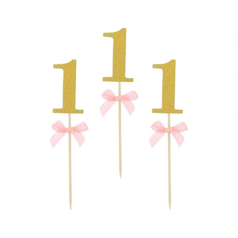 Pink 1st Birthday díszítő pálca 10 db-os Csillámos! 10 db pálcika/csomag Anyaga: papír