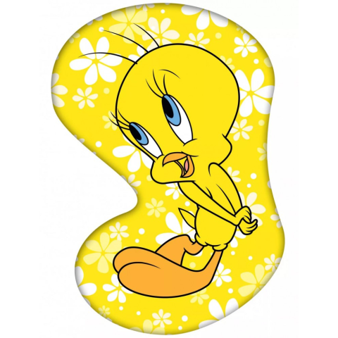 Looney Tunes, Bolondos dallamok formapárna, díszpárna Csőrike Töltött. A huzat anyaga: 100% poliészter A töltet: 100% poliészter Mérete: 26*35 cm A Bolondos dallamok rajzfilmből jól ismert Csőrike, a kanári jelenik meg a párna elején. Hátoldalán virág