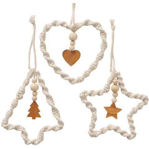 A Boltze Home Elva felakasztható dísz azonnal felhívja magára a figyelmet. A szív-, fenyőfa- és csillag formák natúr színűek. A fából készült gyöngyökkel és makramé zsinórral természetes téli díszítésre alkalmas, pl. ablakok, ajtók és egyéb dekorálásához. Többféle mintával / színváltozatban kapható termék. Az ár 1 szettre vonatkozik. Online vásárlás esetén a tényleges termékváltozat véletlenszerűen kerül kiválasztásra. Válasszon tetszése szeri