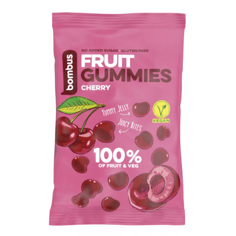 Cseresznye ízű vegán gumicukorka hozzáadott cukor nélkül. Összetevők: 95,5 % gyümölcslevek és pürék (sűrített almalé, sűrített almapüré, sűrített cseresznye püré 5%, sűrített cseresznyelé 1%) zselésítő anyag: pektin, sűrített ciromlé, citrusrost, termé