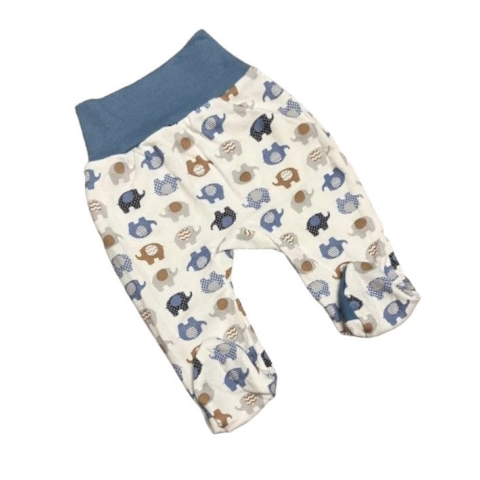 1 kép Bomer Pamut bébi nadrág - Fehér/Kék Elefántos 68