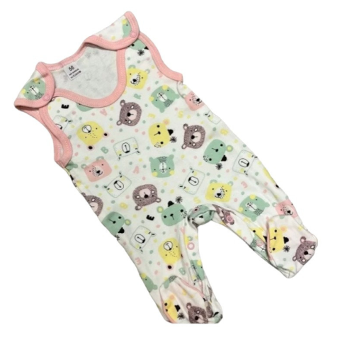 1 kép Bomer Pamut Ujjatlan Rugdalózó - Fehér Rózsaszín Menta Macis 80