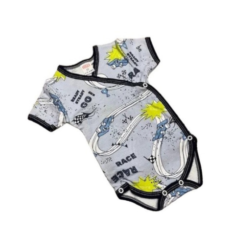 1 kép Bomer Réklis Rövid Ujjú Pamut Body - Kék Versenyautós - 62