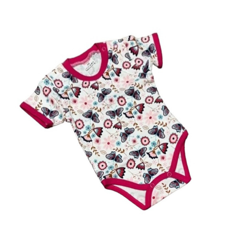 1 kép Bomer Rövid ujjú Body - Fehér/Rózsaszín Pllangó/Virág - 68