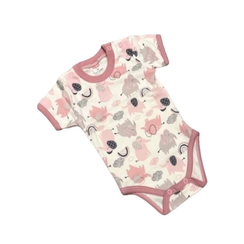 1 kép Bomer Rövid ujjú Body - Rózsaszín/Krém Elefántos - 68