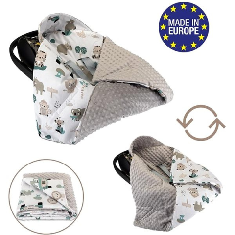 BOMIMI Minky hordozós takaró - Utazó állatkert, szürke lakástextília termékleírás