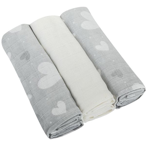 Mosható pelenka - gyerek, univerzális, pamut, mérete 70 × 80 cm, 3 darab a csomagban, szív motívum, fehér és szürke kivitel A pelenkák a baba felszerelésének egyik alapvető tartozékai. A manapság egyre trendibb Bomimi mosható pelenkák pozitívan hatnak a gyermekek csípőjének megfelelő fejlődésére és ami a legfontosabb, nem