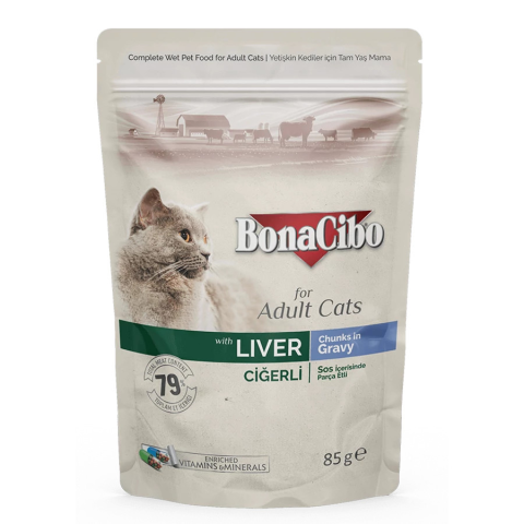 BonaCibo Bonacibo Pouch - Wet Adult Cat Food - Liver 85 g macskaeledel termékleírás
