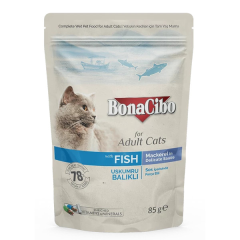 BonaCibo Bonacibo Pouch - Wet Adult Cat Food - Mackarel 85 g macskaeledel termékleírás