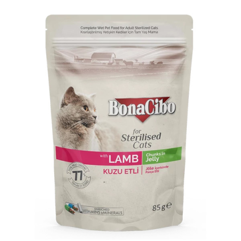 BonaCibo Bonacibo Pouch - Wet Adult Cat Food - Sterilised - Lamb 85 g macskaeledel termékleírás