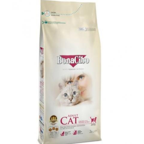 Teljes BonaCibo Cat Csirke, szardella, rák, rizs 5kg termékleírás
