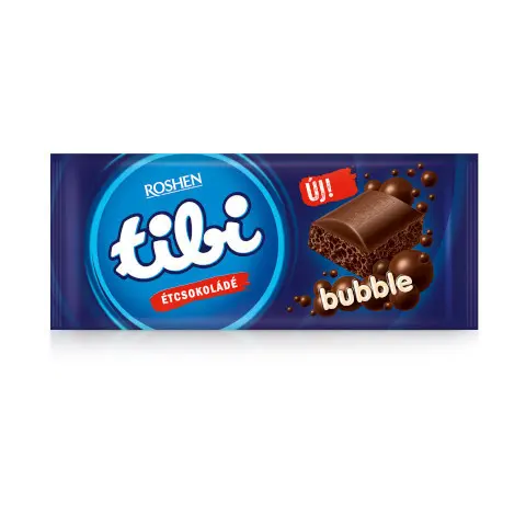Tibi Bubble 80g Étcsokoládé Fő jellemzők Ropogós buborékok a belsejében, amelyek harapáskor szikrát adnak az élménynek. Kiegyensúlyozott ízprofil - gazdag étcsokoládé, amelyben a kesernyés jegyek finoman keverednek az enyhe édességgel. 80 g-os