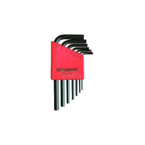 BONDHUS HLX7MS L- hatszögkulcs készlet, rövid egyesvégű, 7 részes BONDHUS rövidszárú L hatszögkulcs készlet 7 részes, 1,5-6 mm Felasználható hatlapú, belsőkulcsnyílású (imbusz) csavarok rögzítéséhez és oldásához. Anyaga: Protanium acél - 20%-kal nagyob