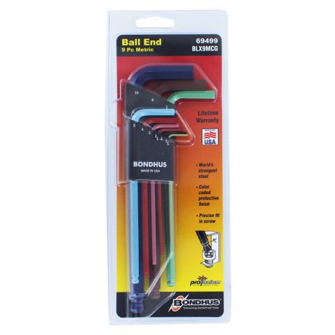 1 kép Bondhus Imbuszkulcs készlet hosszú, gömbv. 1.5-10 mm színkódolt - BLX9MCG Bondhus