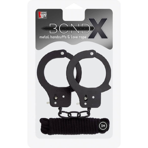 1 kép BondX Metal Cuffs & Love Rope Set - fém bilincs kötözővel (300 cm)