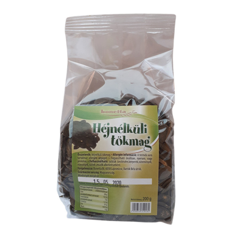 Bonetta héjnélküli tökmag natúr 200 g Egészséges olajos mag, magas esszenciális olaj tartalommal. Az esszenciális zsírtartalmának köszönhetjük a tökmag vértisztító hatását, így a köszvény kitűnő ellenszere lett, hiszen ahol tökmagot fogyasztanak ott, t