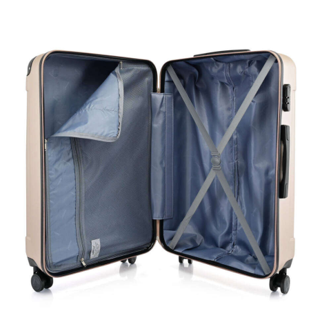 BONTOUR “VERTICAL” 3 db-os Bőrönd Szett, Duplakerekes Gurulós bőrönd számzárral, utazó poggyászkészlet ABS anyagból, Pezsgő színű