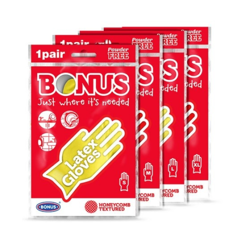 A BONUS háztartási latex gumikesztyű védelmet, extra higiéniát és kényelmet nyújt a háztartási feladatok elvégzéséhez.
