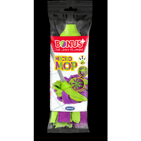 A BONUS+ MicroMOP a leghatékonyabb nedvszívással rendelkező felmosófej sima padlófelületekhez. A padlómosás során az egyik legnagyobb kihívás, hogy a koszt valóban fel tudjuk szedni és megakadályozzuk a piszok ide-oda tologatását. Nem elég csak simoga