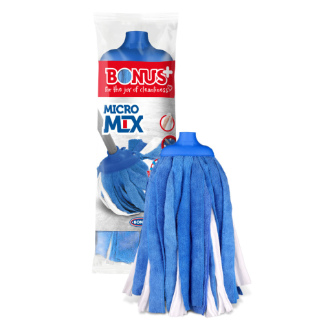 ?A Bonus MicroMIX mikroszálas és viszkóz kevert felmosófej egy innovatív takarítóeszköz, amely a mikroszálak és a viszkóz előnyeit ötvözi a hatékony és alapos tisztítás érdekében. Extra nagy méret: (35 x 12 x 7 cm) Ezt a valóban különleges felmosófeje