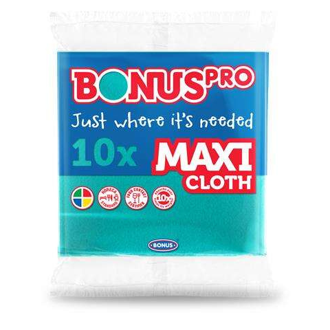 Törlőkendő, univerzális, 10 db, BONUS MAXI, zöld A BONUSPRO MAXI törlőkendőt maximálisan a HoReCa szegmens igényeinek megfelelően alakítottuk ki. Mérete 38X40cm, így hatásosan tisztítja a nagyobb felületeket, legyen szó pultokról, polcokról, állványokr