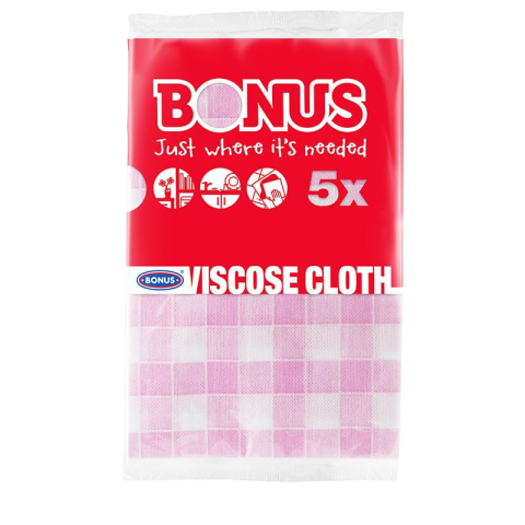 Bonus viszkóz mosogatókendő 5 darabos - Bonus viszkóz mosogatókendő - poliészter és viszkóz keverék - magas nedvszívó képesség - 5 db / csomag - 52 x 36 cm - 40 g / db
